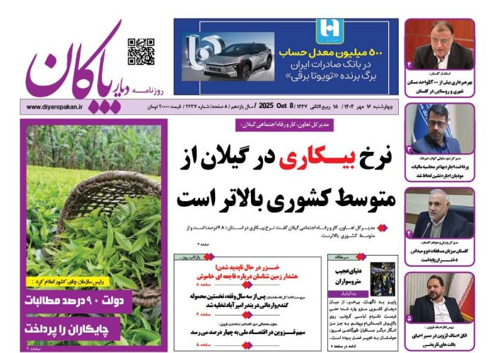 آرشیو روزنامه یکشنبه 20 مهر 1404 – شماره 2240 شنبه 19 مهر 1404 – شماره 2239 پنجشنبه 17 مهر 1404 – شماره 2238 چهارشنبه 16 مهر 1404 – شماره 2237 سه شنبه 15 مهر 1404 – شماره 2236 دوشنبه 14 مهر 1404 – شماره 2235 یکشنبه 13 مهر 1404 – شماره 2234 شنبه 12 مهر 1404 – شماره 2233 پنجشنبه 10 مهر 1404 – شماره 2232 بیشتر